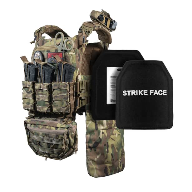 Благодаря анатомической форме плиты эффективно поглощают кинетическую энергию удара, уменьшая риск травмирования органов. Для повышения долговечности, плиты покрыты черной тканью Оксфорд 1000D, которая является огнестойкой и водонепроницаемой.