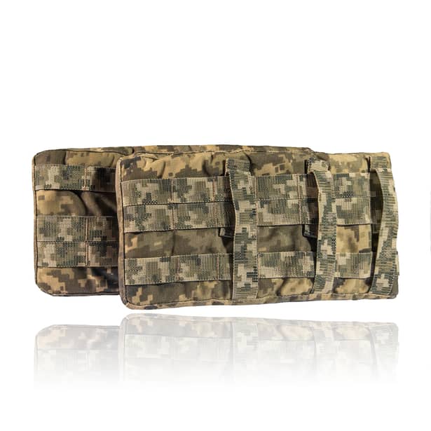 Карманы имеют размер 15 х 30 см - именно такие, чтобы легко поместить баллистические пакеты. Они надежно крепятся к вашей плитоноске благодаря системе Molle - не переживайте, они точно будут на месте даже во время активных движений. И конечно, каждый карман имеет клапан Velcro, который фиксирует мягкий пакет внутри, поэтому они не будут «ездить» во время выполнения задач.